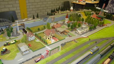 Een afbeelding van het Faller-AMS in combinatie met Märklin M-rail. Het is mogelijk om een auto op een treinwagon te rijden en deze op een andere plaats weer te lossen.